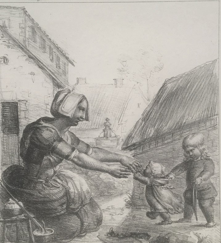 Lithographie (la feuille 347*260 mm, le sujet 208*187) de Charles Etienne Pierre Motte (1785 † 1836) d’après Félix Bachellery (1795 † 1865) ; dans la planche en bas au centre « Bachellery », au-dessus du sujet à gauche « Costume d’Auvergne », sous le sujet à d « Litho. de C. Motte », en dessous au centre « Nourrice de Cressini près Clermont ». Hist. : une des 5 planches d’un recueil intitulé « Costume d'Auvergne » publié chez Martinet, éditée chez Cheyere au 3 rue de l'Éperon à Paris, en 1822. Bibl. : Bdf, 22 juin 1822, n°400 ; BUCF, N° inventaire: 136450, cote GRA 5600 ; IFF1800, vol. 1, p. 258 (datée à tort ou par erreur d’impression de 1882).