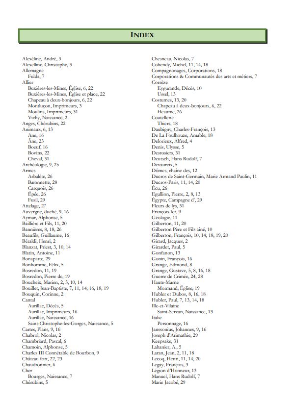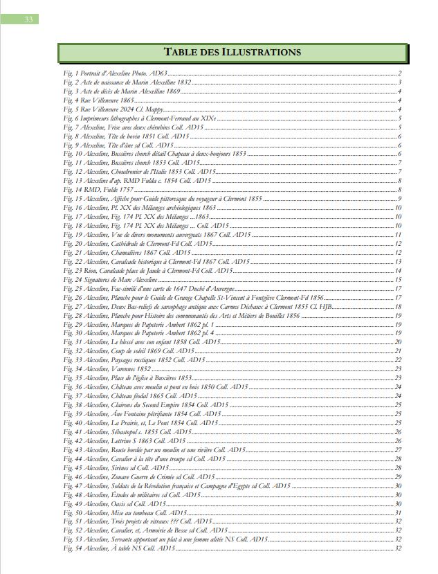 Biography of Marc Alexeline, 19th century lithographer. Notes on Clermont printers between 1840 and 1870. 43 p. 54 illustrations, 100 notes. View of Royat on the cover. No. 1, Series Les Monographies Coll. Illustrated encyclopedia of Auvergne, Bourbonnais and Velay.
