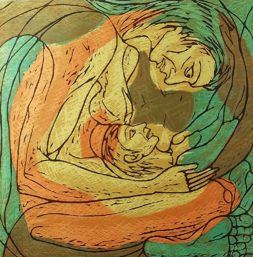 Gravure sur bois couleur par le sculpteur et graveur italien Angelo Casati (1915 † 1998). Sous le TC (398*398 mm) au crayon justifiée 27/45 et titrée Maternita 1974 Urbino Xilographia à g, signée à d. La feuille 70*50 cm.