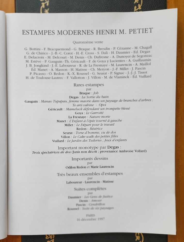 Catalogue Exposition vente aux enchère de la Collection Henri Petiet du 16 décembre 1997 par la société PIASA Audap Solanet & Associés. Quatorzième vente. 192 œuvres commentées et parfois reproduites. Estimations sur feuillet séparé. 68 p. Broché, 255*200 mm.