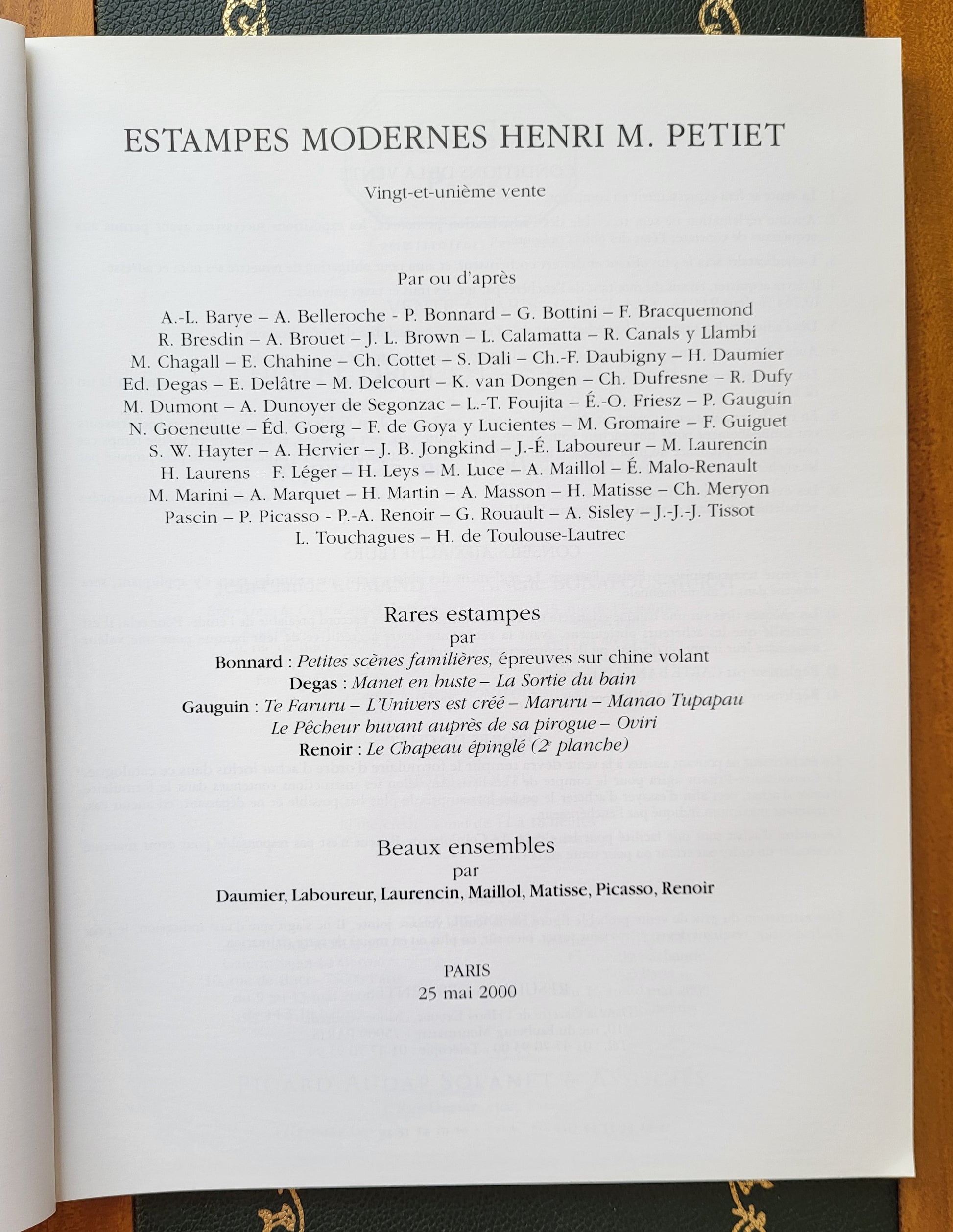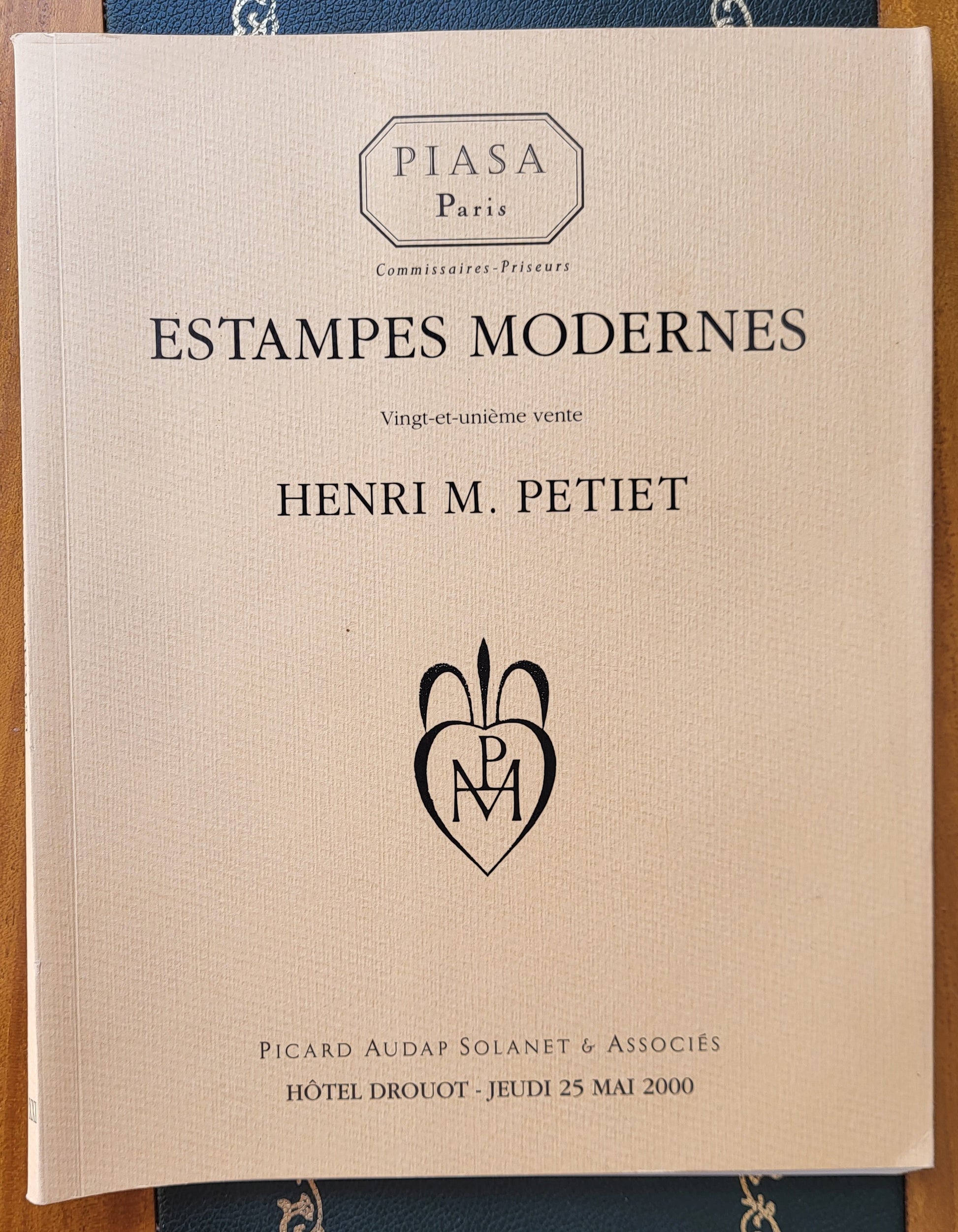 Catalogue Exposition vente aux enchère de la Collection Henri Petiet du 25 mai 2000 par la société PIASA Audap Solanet & Associés. Vingt-et-unième vente. 239 œuvres commentées et parfois reproduites. Estimations sur feuillet séparé. 89 p. Broché, 255*200 mm.