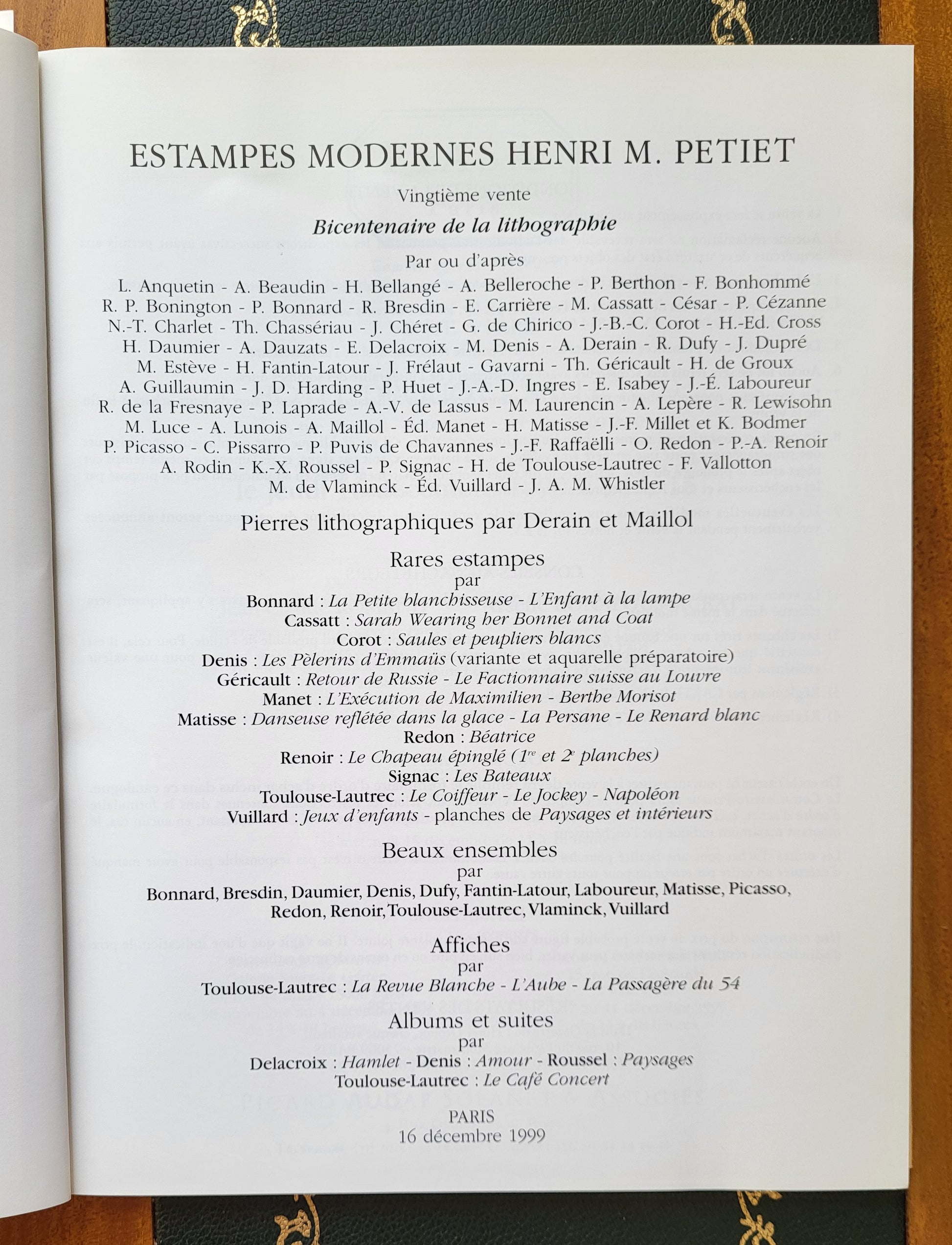 Catalogue Estampes modernes Henri M Petiet déc 1999
