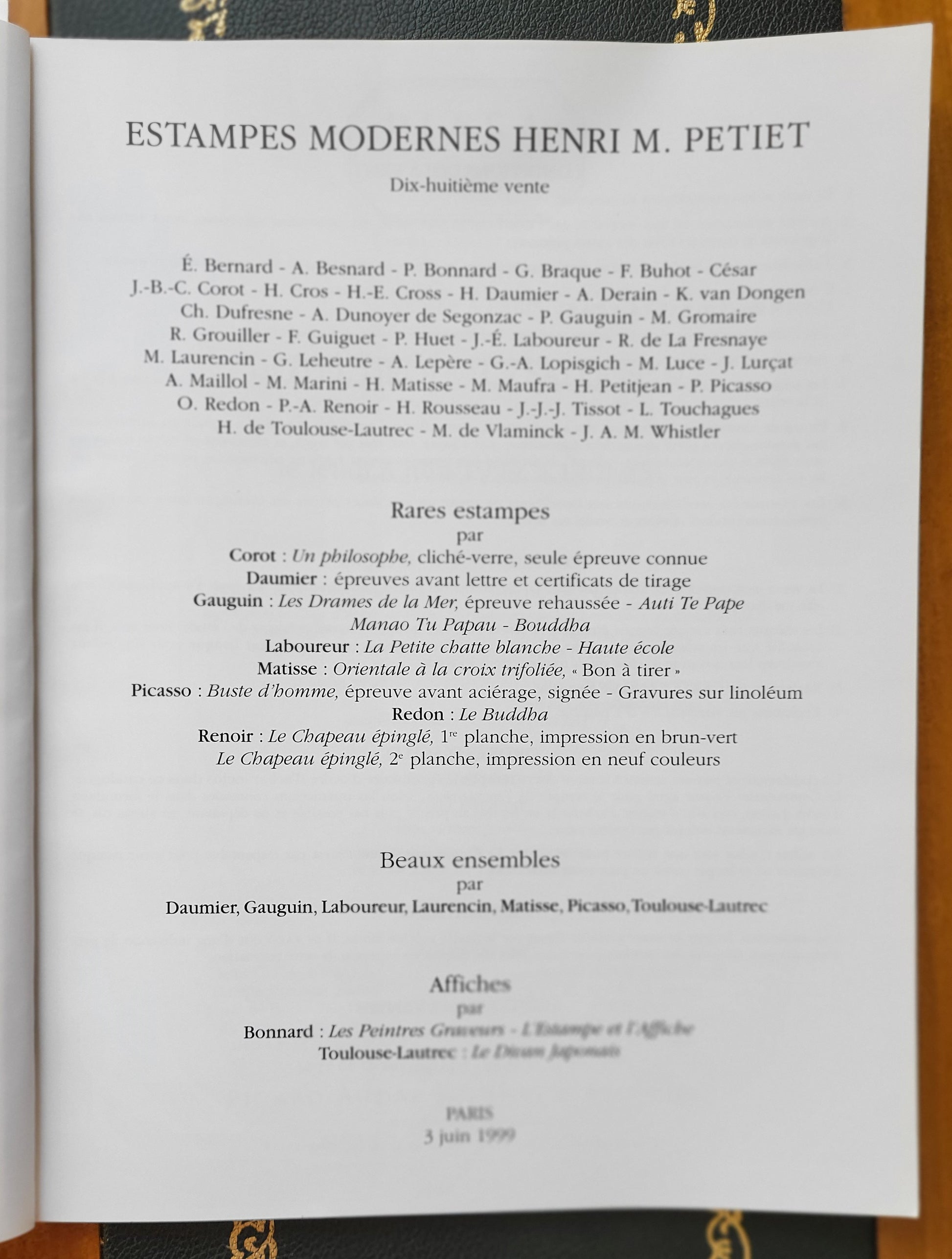 Catalogue Estampes modernes Henri M Petiet juin 1999