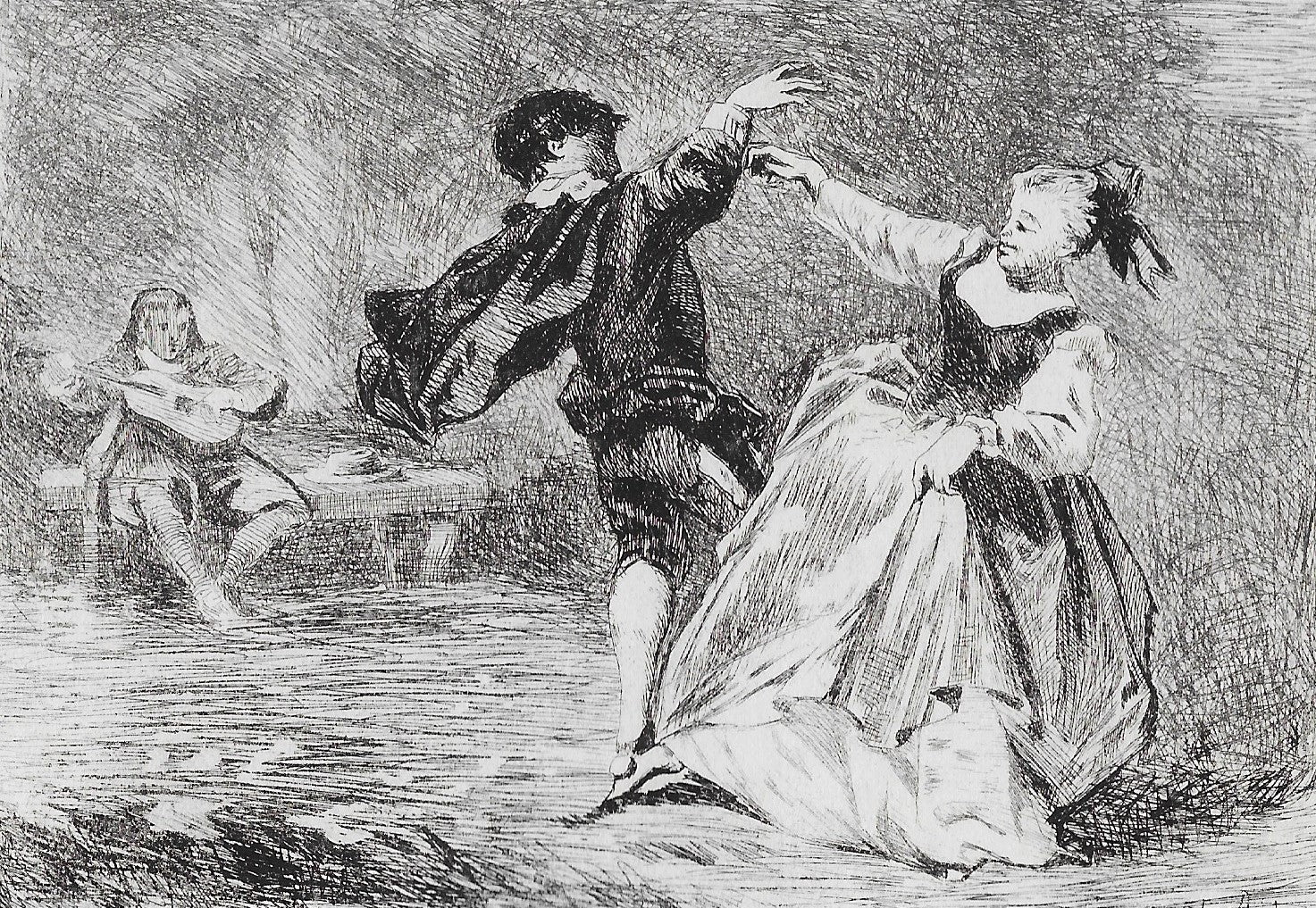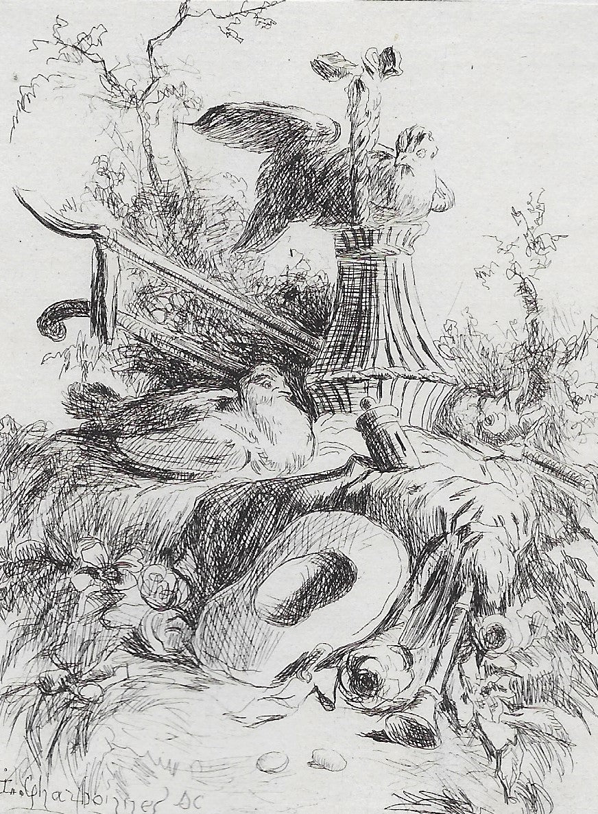 Une gravure d'interprétation de Jean-Louis Charbonnel (Paulhac (Cantal), 28 mars 1848 † Paris, 22 mai 1885) d’après Watteau : « La Danse » (en HT) et une eau-forte originale « Des Emblèmes » en cul-de-lampe de l’article « La France de Watteau ».. Toutes les gravures sont sur Chine collé, 16 p. (p. 97-112). Livraison complète des deux autres illustrations d’après Watteau par W. Marks et d'un paysage hommage à Watteau par le Dr Gachet alias Van Ryssel