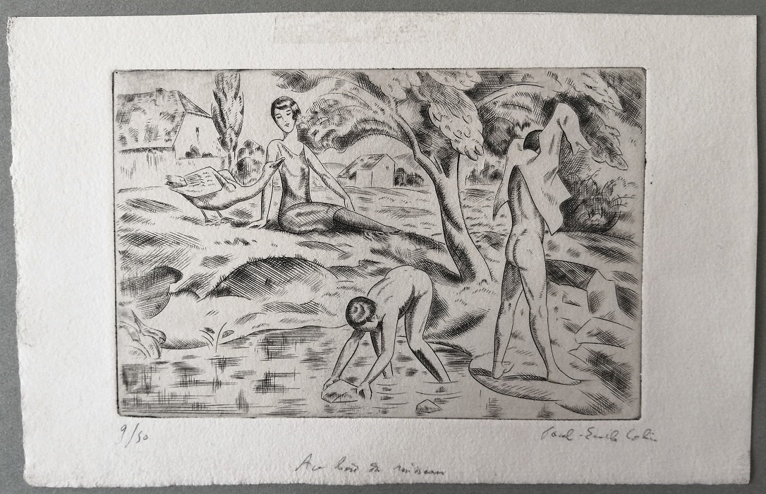Estampe originale au burin par Paul-Émile Colin (Lunéville, 1867 † Bourg-en-Bresse, 1949) sur papier vélin exposée au Salon d'automne de 1928. Notre épreuve : Au crayon sous le CP, numérotée à gauche (9/50), signée à droite, titrée en bas au centre ; La feuille 135*210 mm, au TC 100*150 mm.