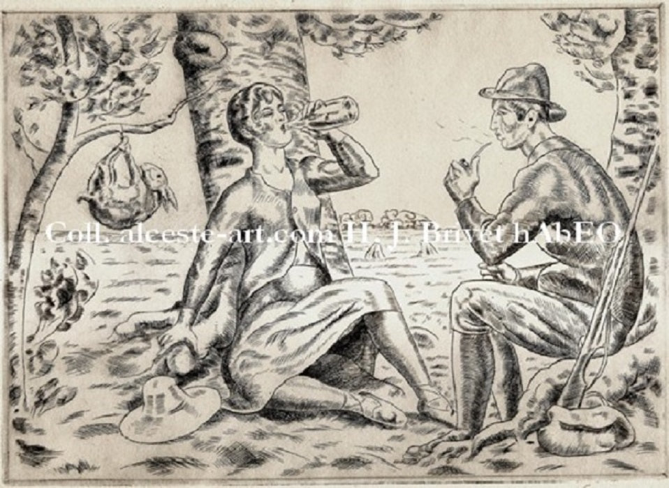 Estampe originale au burin par Paul-Émile Colin (Lunéville, 1867 † Bourg-en-Bresse, 1949) sur papier vélin exposée au Salon de 1930. Notre épreuve : Avant réduction du cuivre, au crayon sous le CP, numérotée à gauche « 5/15 », signée à droite, titrée en bas au centre ; La feuille 220*280 mm, au TC 175*245 mm, au CP 178*248 mm ; Traces d’un ancien collage en haut de la feuille, sinon TBE.