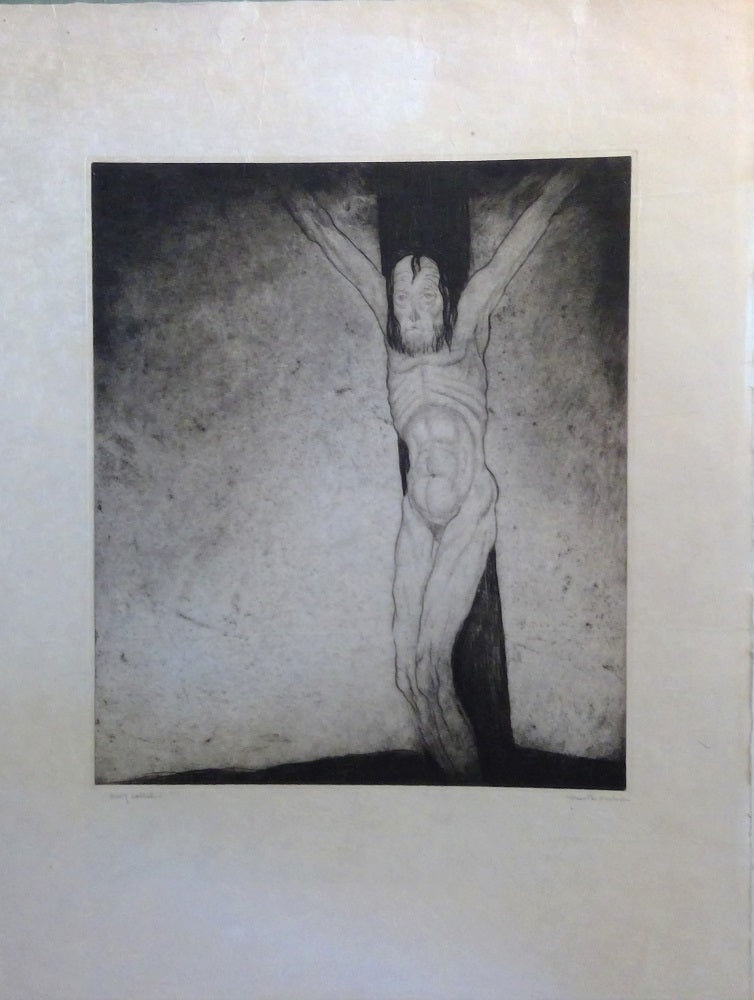 Eau-forte originale par André Collot (Montigny-le-Roi, 27 juin 1897 † Paris, 30 novembre 1976). Sur Japon nacré, au crayon sous le TC à g signature à d épreuve d’artiste. grandes marges, TBE malgré un pli horizontal. Collot a illustré de gravures sur cuivre et sur bois Le Chemin de la Croix de Paul Claudel. La feuille 660*505 mm, au CP 520*360 mm, au TC 412*352 mm.