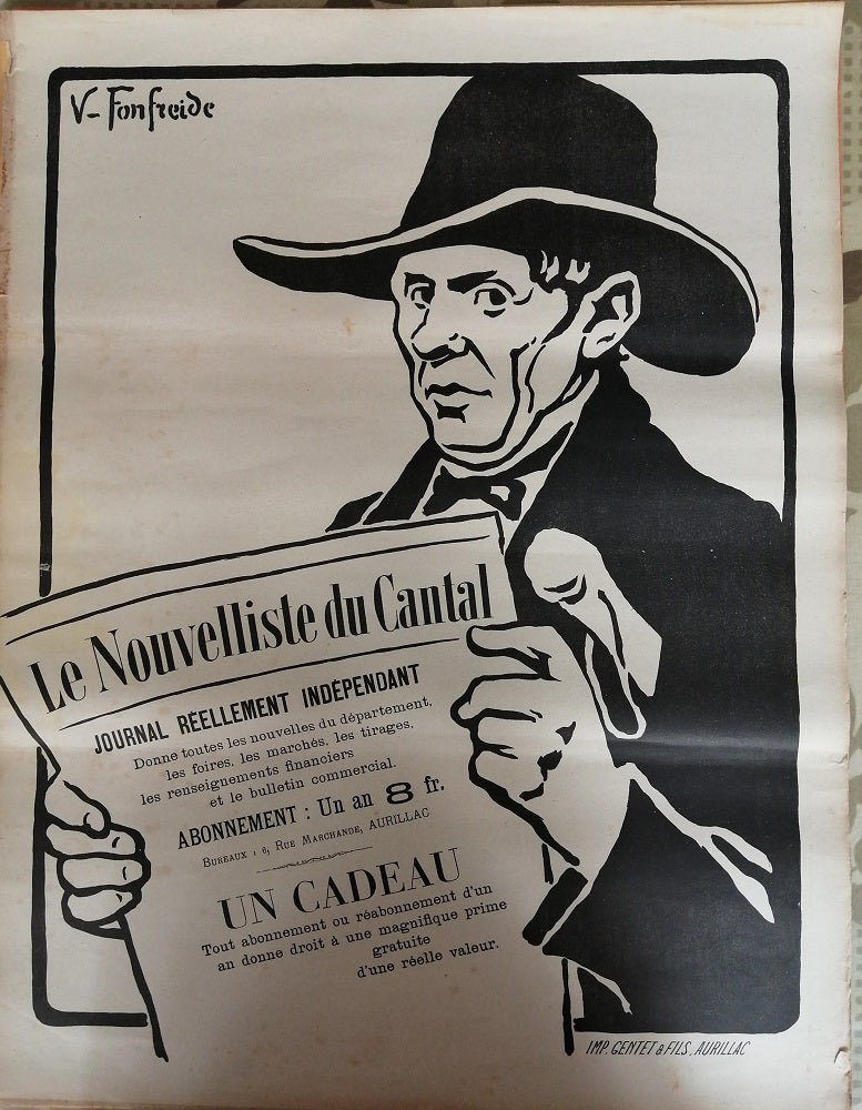 Fonfreide Affiche Le Nouvelliste du Cantal 1905 Blanc
