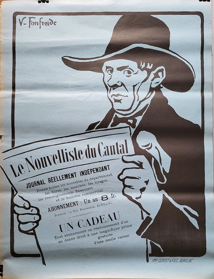 Fonfreide Affiche Le Nouvelliste du Cantal 1905 Bleu