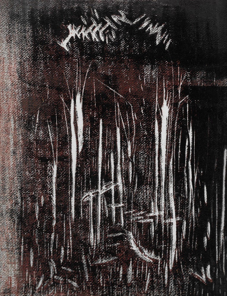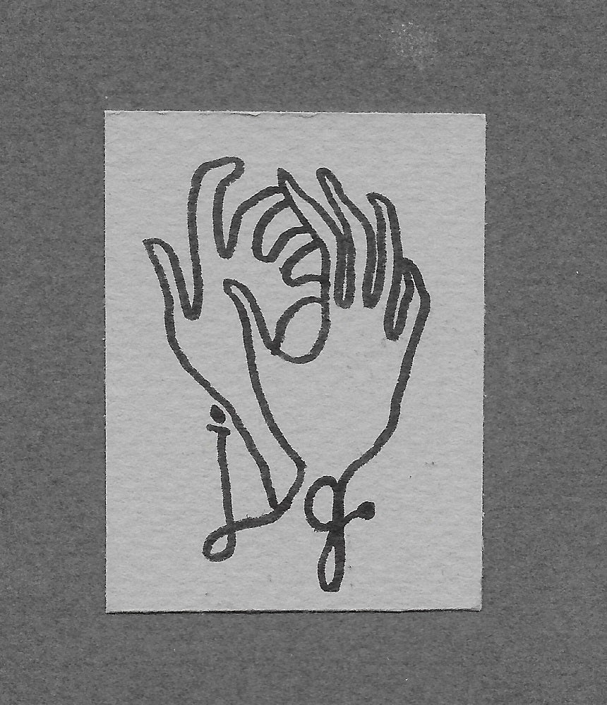 Monotype par le graveur bourbonnais Jacques Gaulme (Bizeneuille (Allier), 1915 † 1998)). Planche (294*237 mm) montée sous portfolio (245*317) avec ex-libris (50*38, le sujet 45*29 mm) au premier plat : les initiales j g sous deux mains qui se rejoignent.