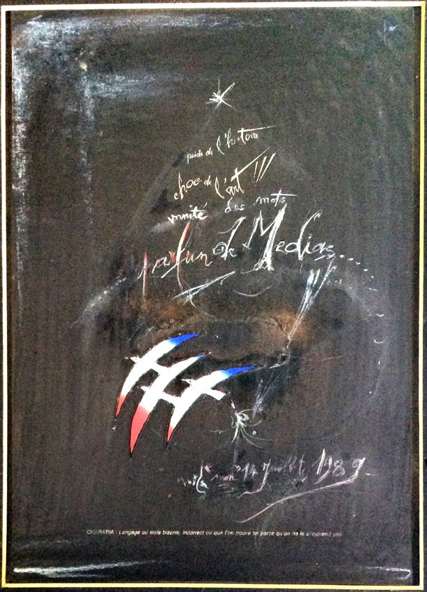 Dessin original et collage de Christian Gorce († 2004) pour la rarissime édition du catalogue AMAC pour l'exposition « Charabia 89 » lors du Bicentenaire de la Révolution Française à Chamalières (Puy-de-Dôme, Auvergne). Dim : 295*210 mm.