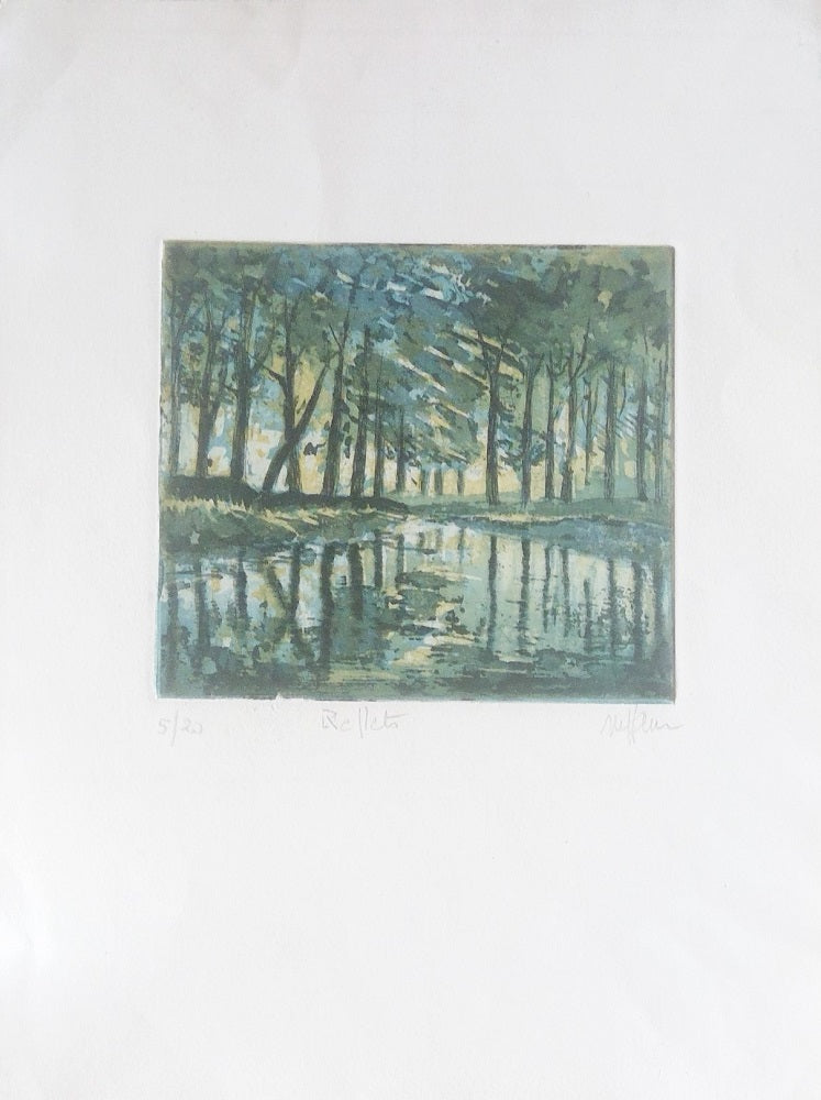 Aquatinte originale sur 3 plaques par Marie-Josèphe James (Née en 1936), Sous le CP, au crayon justifiée à g 5/20, titrée au centre, sbg. La feuille 390*287 mm, au TC 158*178 mm.