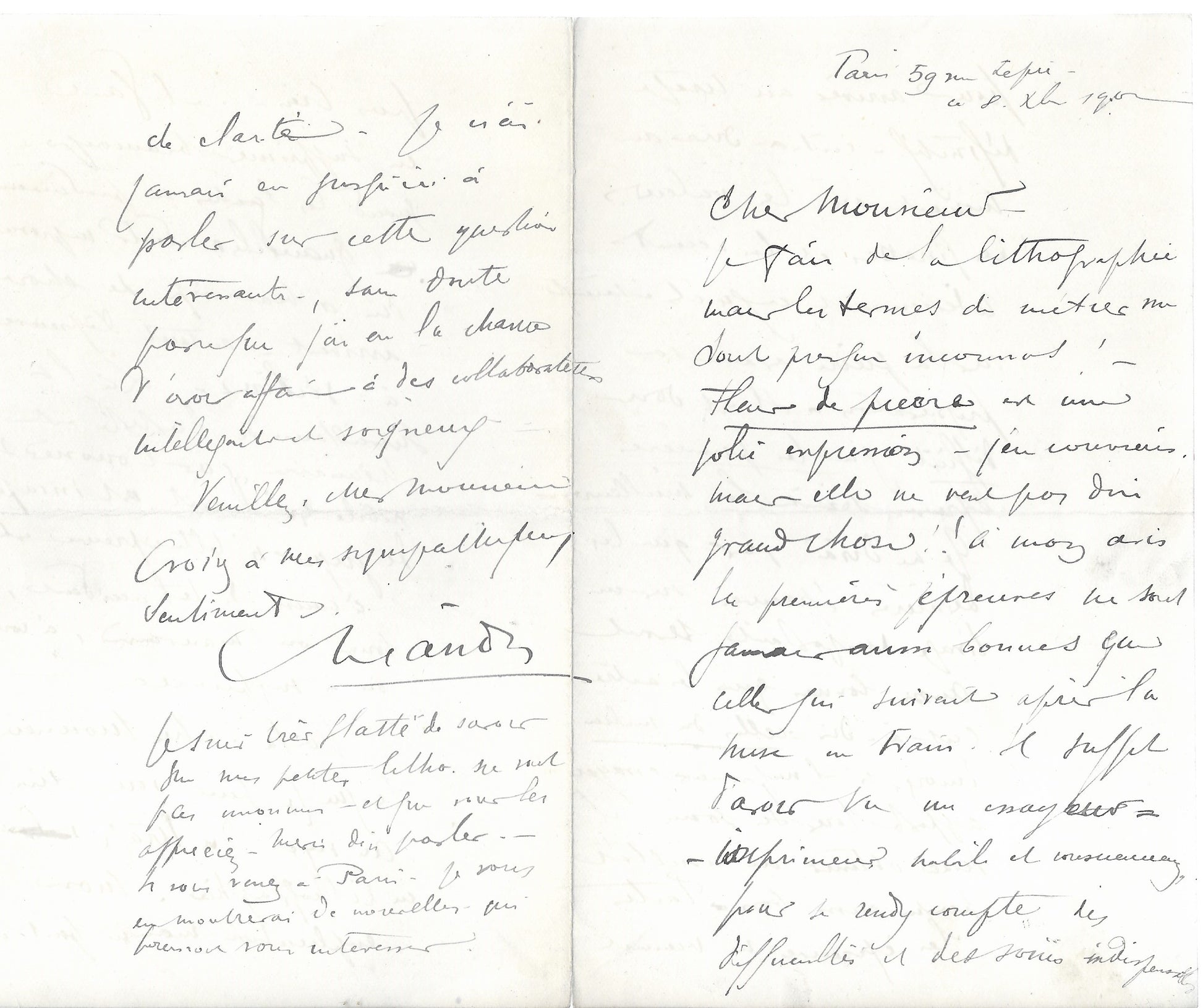 LAS du peintre illustrateur caricaturiste et lithographe Charles Léandre (Champsecret (Orne) 1862 + Paris 1934), in12, 4 pp du 8 décembre 1902 où il aborde les difficultés de la lithographie. Envoi avec assurance Shipping with insurance