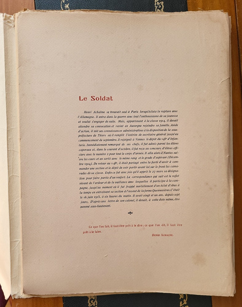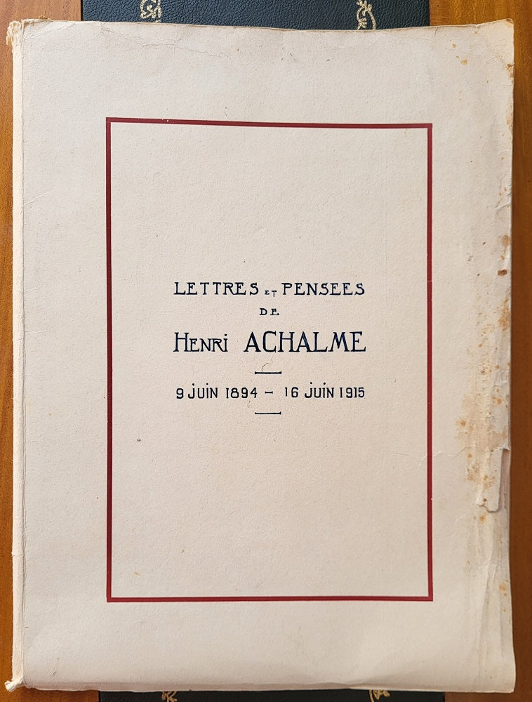 Lettres et Pensées de Henri Achalme 9 juin 1894 - 16 juin 1915