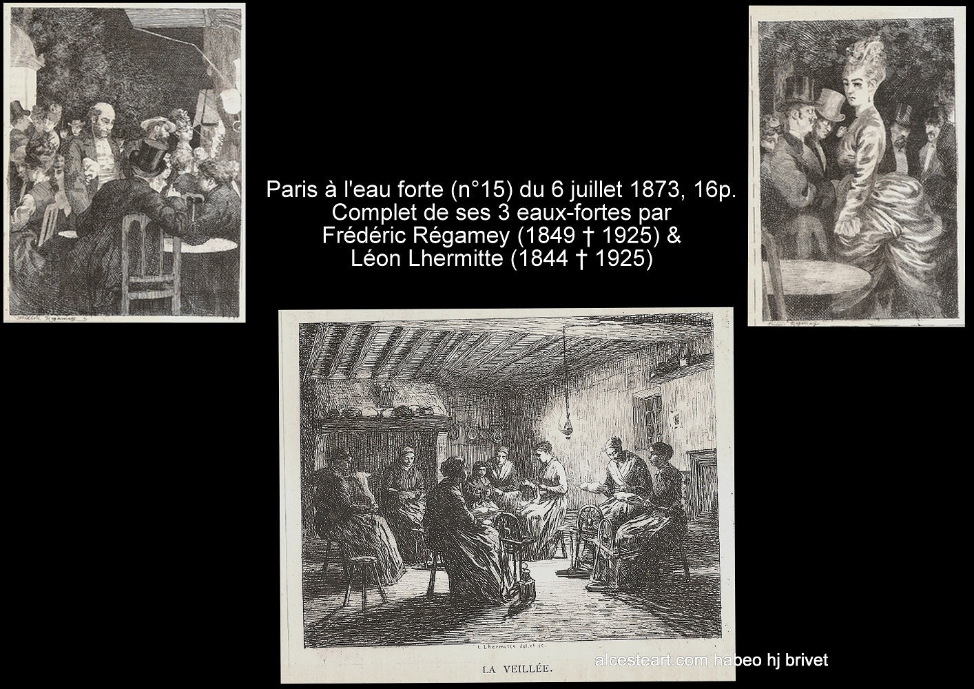 Eau-forte originale par Léon Lhermitte (Mont-Saint-Père (Aisne), 31 juillet 1844 † Paris, 28 juillet 1925) sur Chine collé tirée par Charles Delatre pour Paris à l'Eau forte : Journal illustré d'eaux-fortes créé par Richard Lesclide (Bordeaux, 1825 † Paris, 15 mai 1892); 2ème année, n°15 du 6 juillet 1873 (94*117, au TC 85*110 mm. Réf. : Béraldi, vol. 9 p. 179-181, n°16 ; IFF1800, vol. 14, p.306-309, n°2b ; Henriet, n°17.