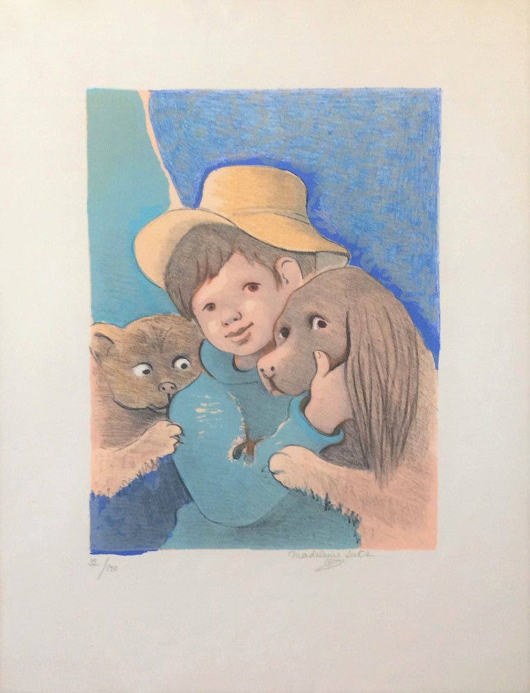 Lithographie par le peintre naïf Madeleine Luka (Maffliers, 7 juillet 1894 † Paris, 18 mai 1989). Au crayon Sbd, justifiée en bg 22/120. La feuille 650*495 mm. Le sujet 426*320 mm.