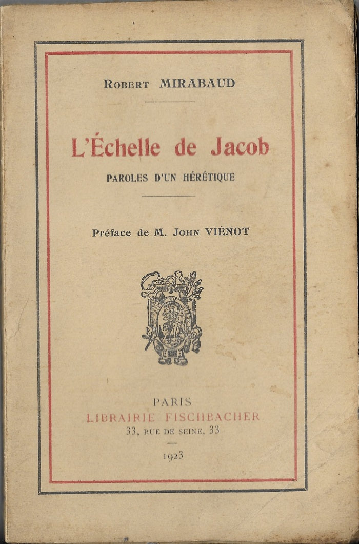Paroles d'un hérétique Préface de John Vienot Edité par Fischbacher, 1923 Couverture souple. BE d'usage. Ouvrage provenant d'une bibliothéque d'ésotérisme et sciences occultes. Robert Mirabaud (Eaubonne (Val-d'Oise), 12 août 1860 † Cannes (Alpes-Maritimes) 22 juin 1933).