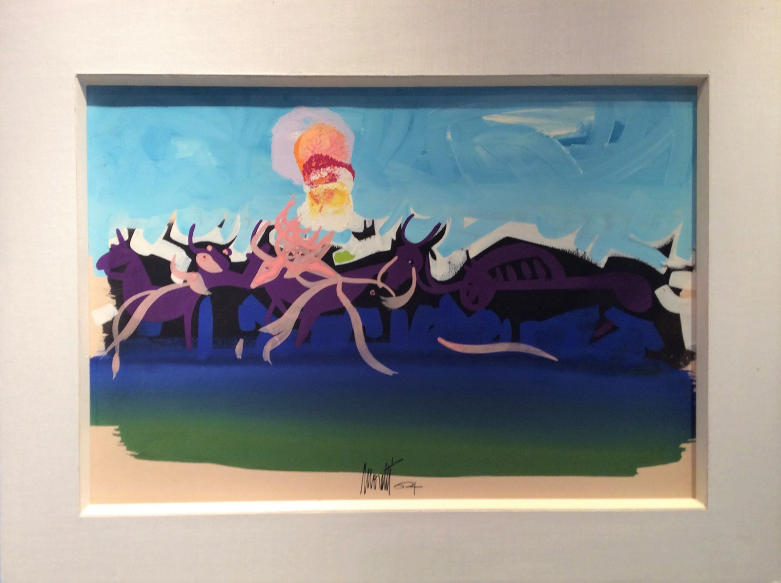 Dessin/Gouache par Raymond Moretti (1931 † 2005), signé et daté en bas au centre Moretti | 64. Dim. : 520*355 mm, le passe-partout 48*640 mm.gass.
