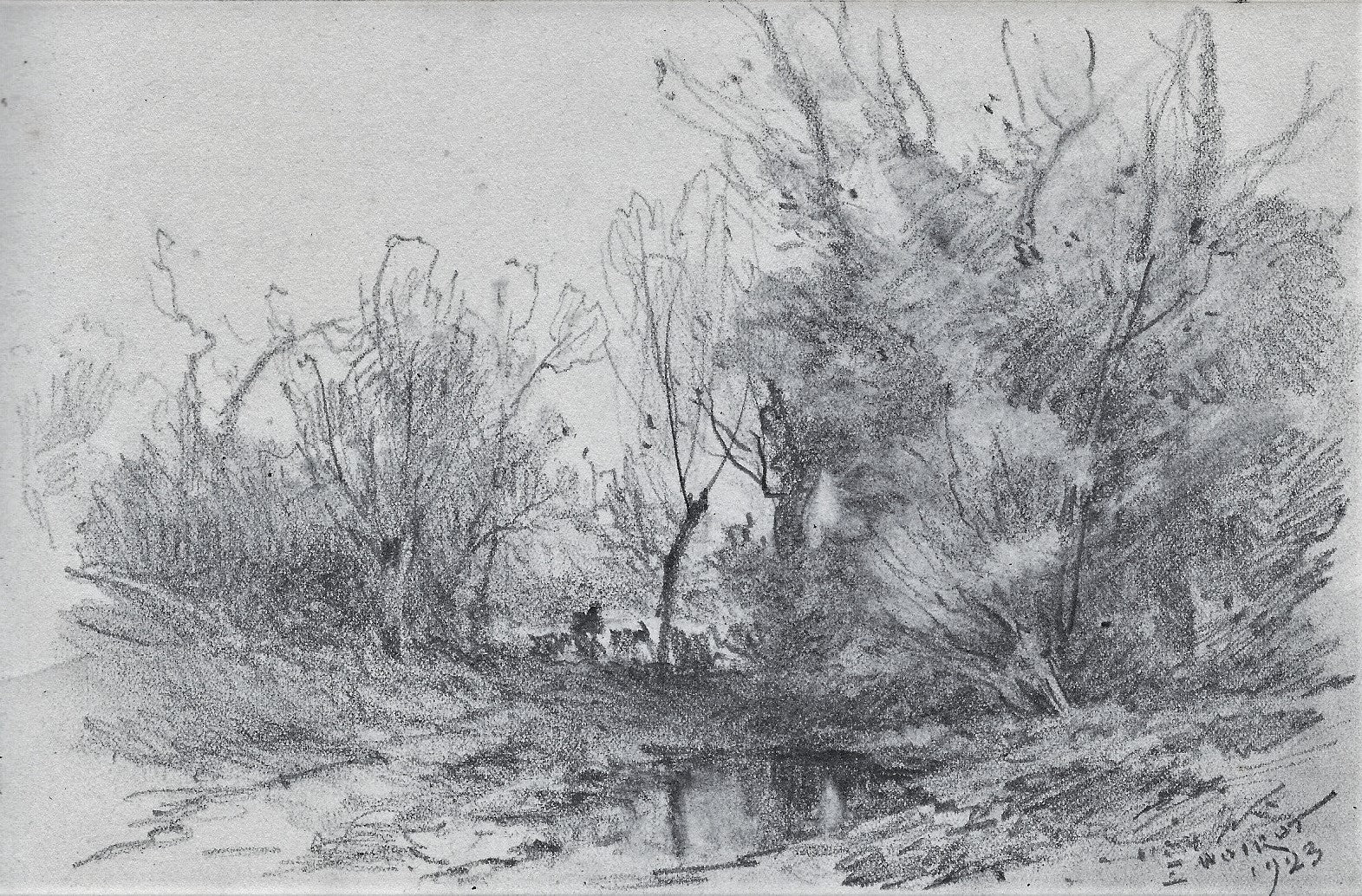 Noirot 41 Chèvres paissant près la mare (1923) Dessin