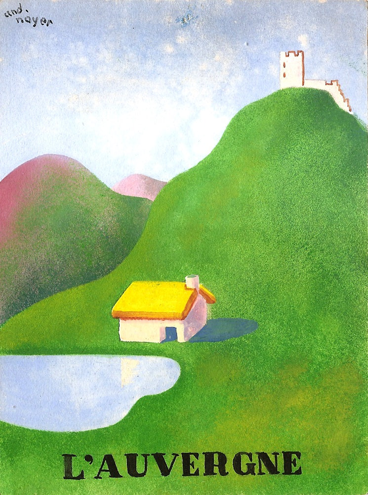 Dessin à la gouache par André Noyer (début 20e) ; probable projet pour une publicité, shg and. noyer, la feuille 160*120 mm, sans marge. Sous passe partout 30*24 cm.