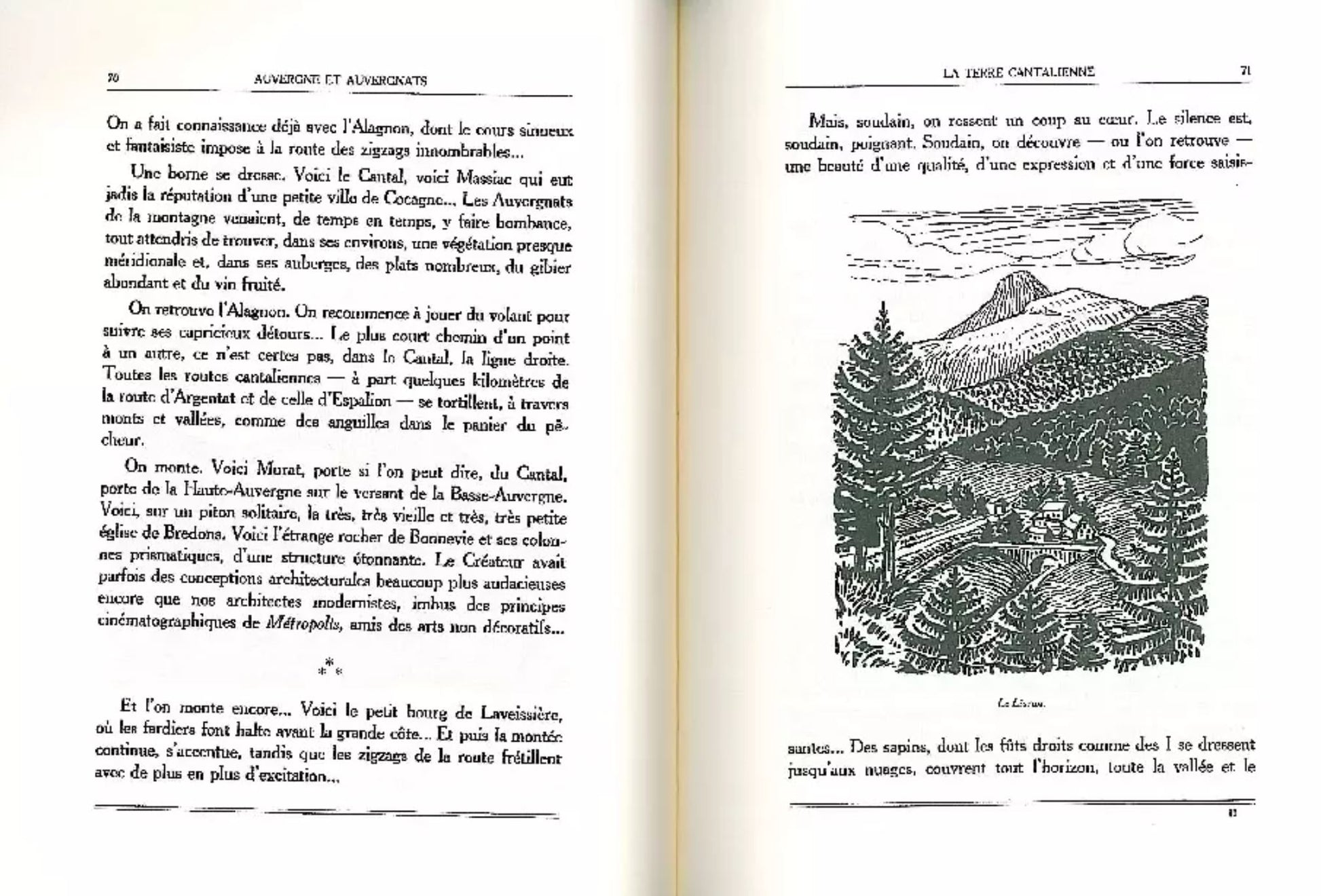 Éditions CRÉER. 138 p. Format : 18,5 x 25 cm, épaisseur 10 mm. Reprint conforme à l'édition de Jean Cussac de 1932 de l'ouvrage de Maurice Prax. Illustration en noir et blanc et 5 pleines pages en couleur de Victor Fonfreide. Ouvrage broché cousu collé, couverture souple avec deux rabats. Les villes de Basse et Haute-Auvergne entre les deux guerres, décrites par une plume journalistique et savoureuse. Une plongée dans le monde des six cylindres, du phono et de la TSF. Plus de soixante-dix ans après sa première parution - en 1932 chez Jean Cussac -, le présent ouvrage a gardé intact son pouvoir de vie. Avec humour, d'une plume alerte, Maurice Prax s'attache à décrire une Auvergne à laquelle il reste indéfectiblement attaché. On passera ainsi du Puy-De-Dôme aux petites "villes cantaliennes"... L'auteur qui sait à merveille baguenauder, fait revivre toute une époque entre les deux guerres, avec la TSF et le phonographe... S'attache, entre autres, aux petits couteliers de Thiers, "que l'industrie moderne n'a pas encore dévorés", note que "la moitié de la population" de Clermont-Ferrand, vit du pneu... Car "l'Auvergne (qui) a horreur des gens pressés", garde toujours "son secret" si on se contente de la traverser. Sensible à l'indicible beauté des paysages, mais aussi poussé vers les êtres, Maurice Prax relate bien des rencontres imprévues. Une intime émotion affleure au moment où il évoque la mémoire de son père et de ses deux frères. Qui reposent sous "ce coin de terre"... De beaux dessins de Victor Fonfreide accompagnent le texte, le serrant de près. On y reconnaîtra l'univers original, la patte inégalée - dans sa sobriété vigoureuse - de l'incomparable artiste auvergnat. François Mary.